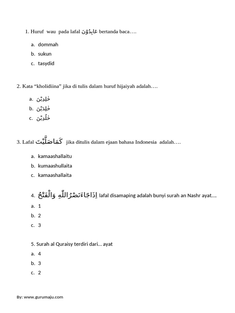 Berikut adalah beberapa contoh soal Al-Quran Hadis kelas XI semester 2 beserta pembahasannya: